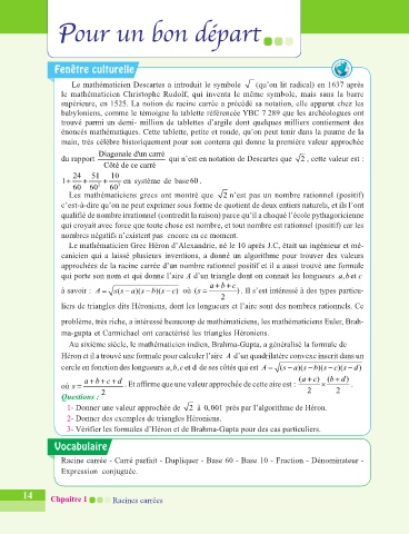 approchées de la racine carrée d’un nombre rationnel positif et il a aussi trouvé une formule