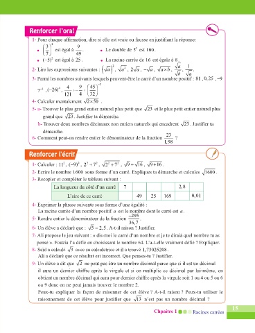b- Trouver deux nombres décimaux non entiers naturels qui encadrent 23 . Justifier ta